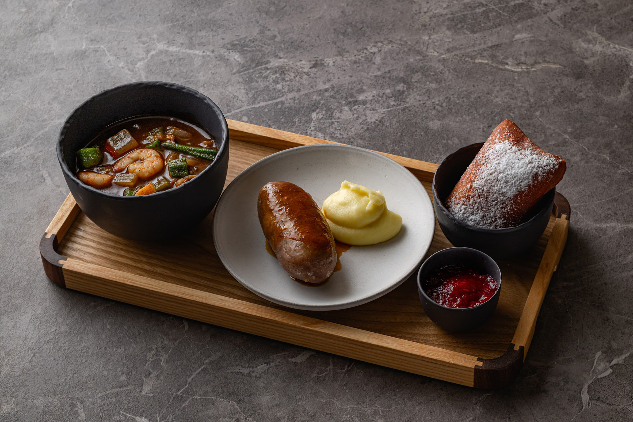 ガンボ、自家製ソーセージ、ベニエが一挙にお楽しみいただけます。